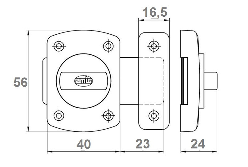 Toilettenschloss mit Knopf 388/40 Chrom 40*55Mm Amig