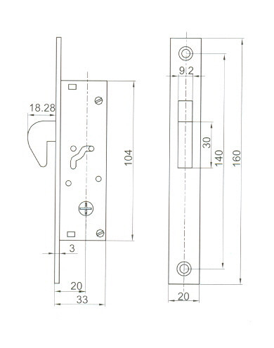 Portalschlosshaken 3 cm Stiftschlüssel /3/ Anbo 1684Ch