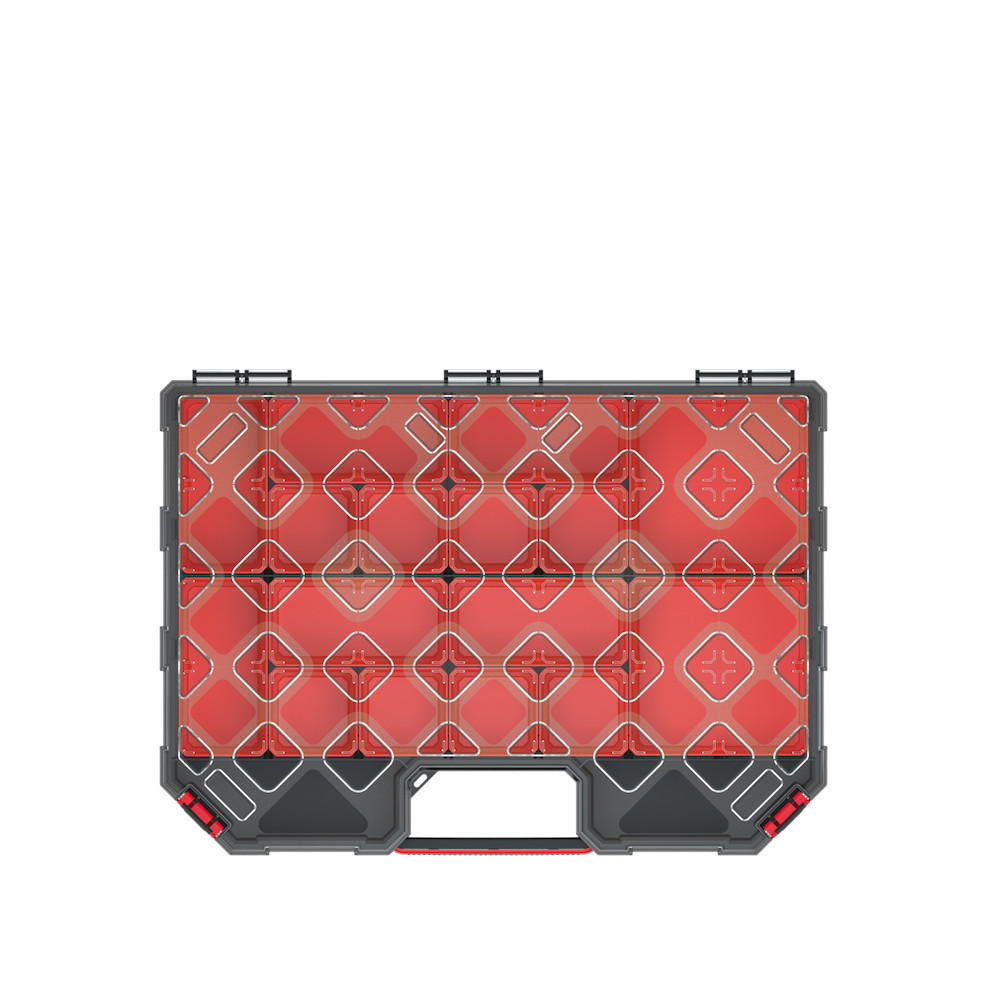 TAGER többfunkciós szervező: A test fokozott szilárdságú polimerek keverékéből készült. Ergonomikus fogantyú. Átlátszó polikarbonát fedél. Kivehető dobozok. Tartós rögzítőelemek. - Rengeteg tárhely. - Kivehető dobozok.