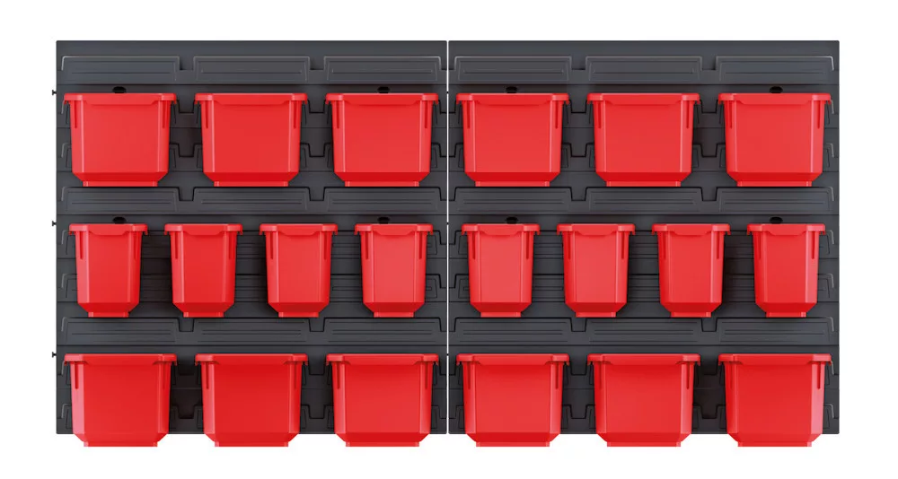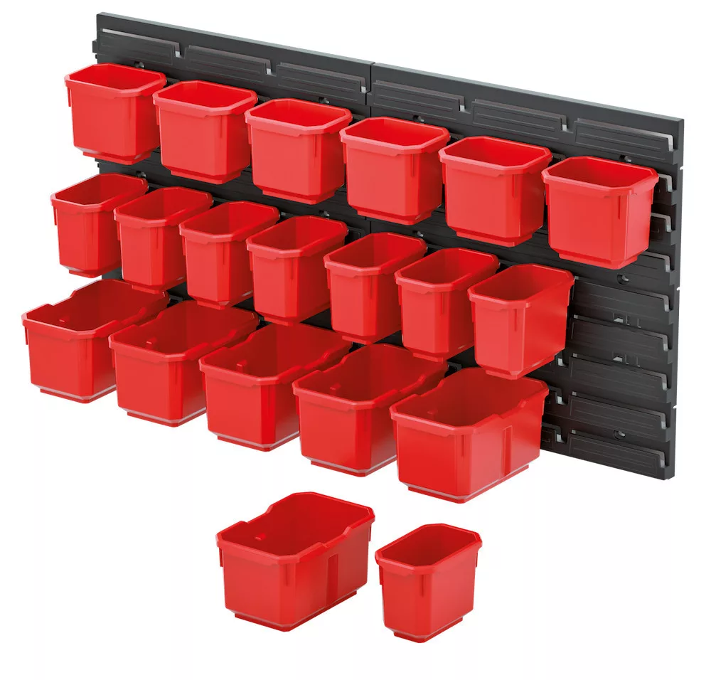 ORDERLINE - panel műhelykonténerekkel: Ellenálló polimer keverékből készült. Készlet a műhely vagy tárolóhely elrendezéséhez bármilyen konfigurációban.