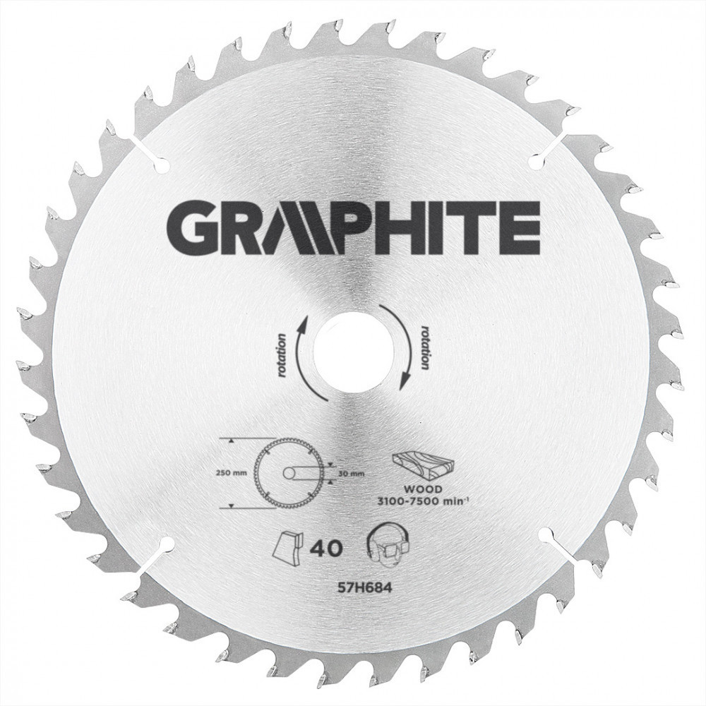 A GRAPHITE vídiabetétes fűrésztárcsa a hőmérsékletnek és a deformálódásnak igen ellenálló MN65-ös mangán acélötvözetből készül. Az YG6A vídiabetétes fogazás lehetővé teszi a fa és faalapú anyagok, mint pl. a rétegelt lemez, a forgácslap vagy az MDF lapok nagyoló vágását. A csomagolásban megtalálható szűkítő gyűrűk lehetővé teszik a fűrésztárcsák alkalmazását a fűrészgép típusok többségéhez.