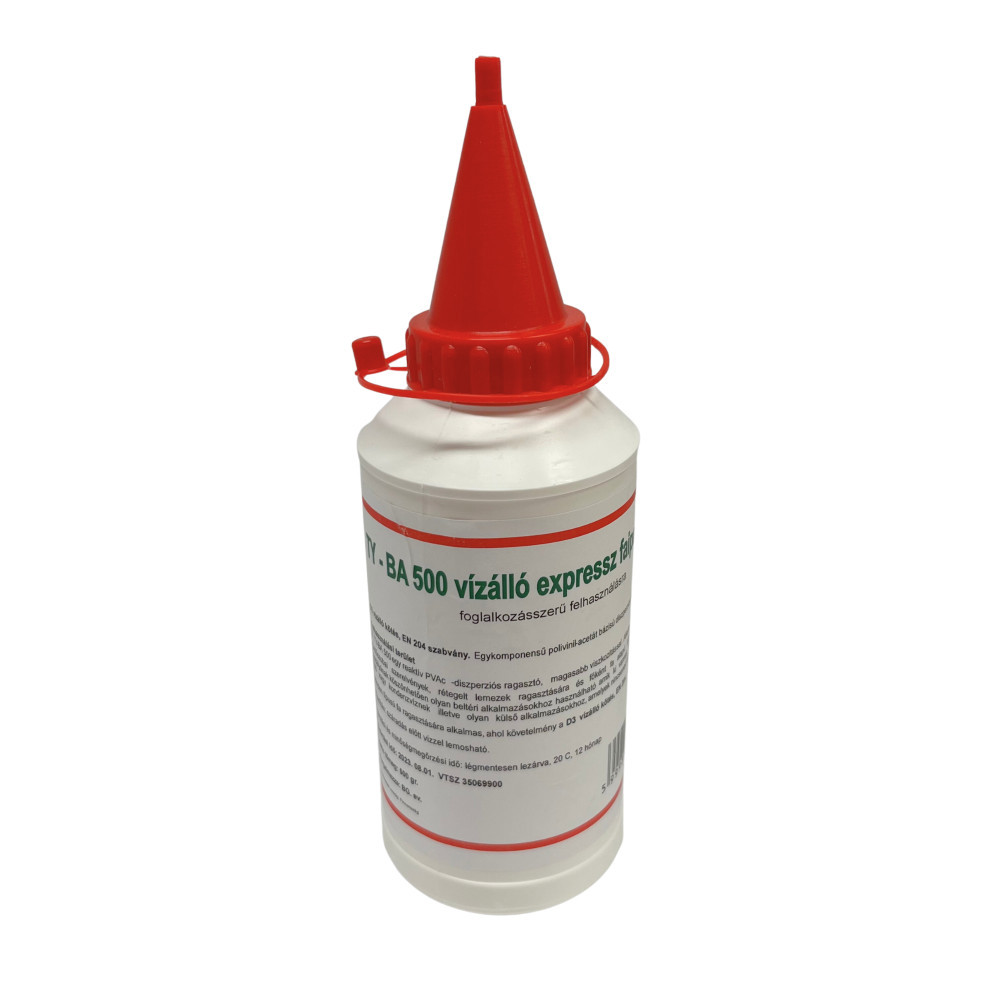 A TY-BA D-3 egykomponensű, kopolimer kötőanyagú, diszperziós, kiváló vízállóságú ragasztó, amely megfelel a DIN EN 204/D3-as szabvány szerinti D3 vízállósági csoportnak. Nedvességnek kitett beltéri elemek készítéséhez használt anyagok, kemény és puhafák, laminátumok ragasztására speciálisan kifejlesztve. Kültérben is használható, ahol a ragasztott anyag nincs kitéve a közvetlen környezeti behatásnak. Nagyfrekvenciás présben is használható. Szín: fehér, száradás után transzparens