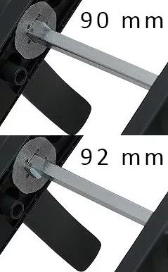 ezt követően a négyzetvasat először be kell helyezni a 90 mm-es zárba, majd rá kell tenni a 92 mm-es rozetta szerelvényt – minden illeszkedni fog. Így a termék a négyzetvas beállításának függvényében 90 és 92 mm-es méretek esetén is használható.