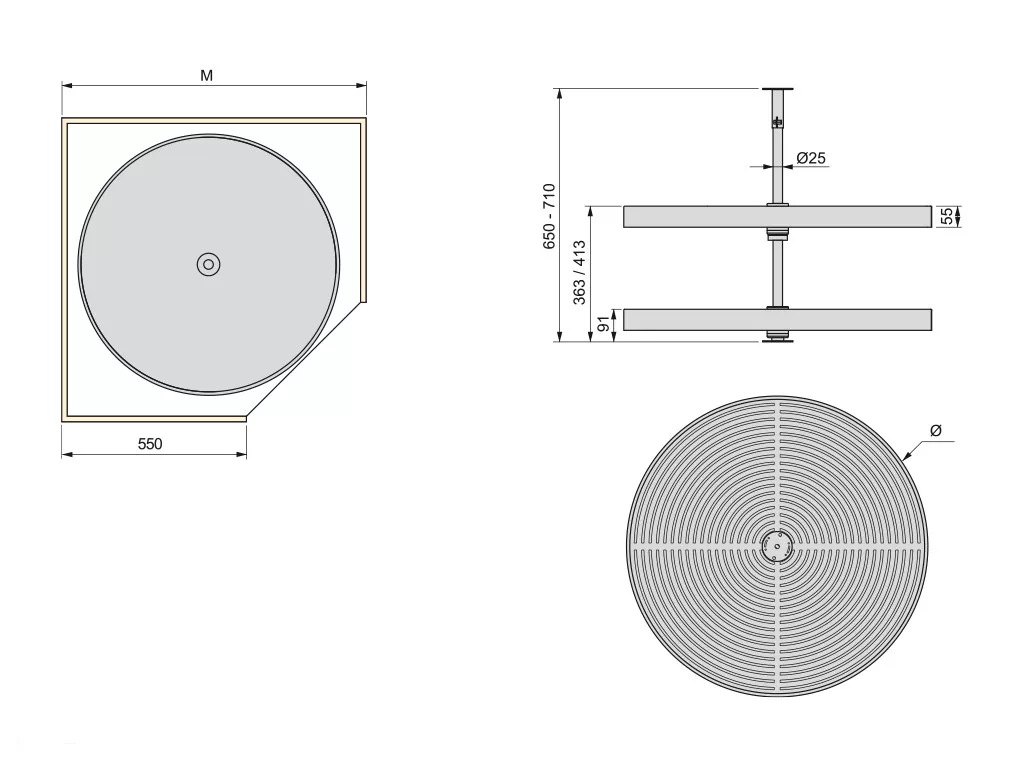Konyhai kör forgókosár szett EMUCA fehér 710mm