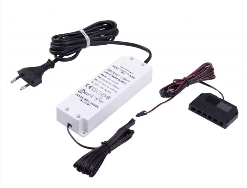 Transzformátor LED lámpához DLight 12V + 6 beépített mini AMP + 2m kábel 33W