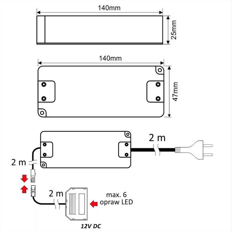 Transzformátor LED lámpához DLight 12V + 6 beépített mini AMP + 2m kábel 33W Megbízható kialakításának köszönhetően széles körben alkalmazható. Felépítése ellenáll a rendszeres igénybevételnek. Kialakítása pontos rögzítést és tartós használatot biztosít. Széles körben felhasználható építési és szerelési munkákhoz. Egyszerűen szerelhető, így gyors munkavégzést tesz lehetővé. Kialakítása a megbízhatóságot és a praktikus használatot helyezi előtérbe.