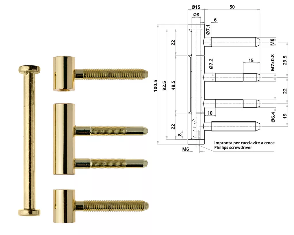 Otlav hinge 3-piece bag wood 15mm Brass complete