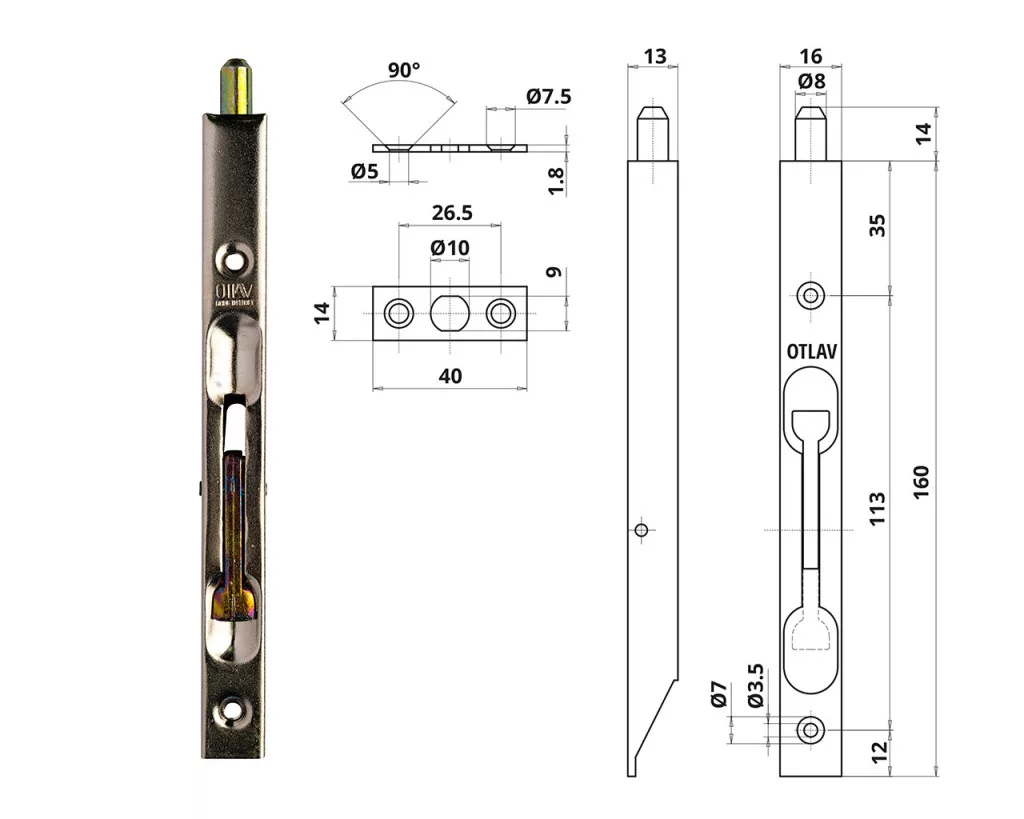 Otlav Slide Lock Security 160mm nickel