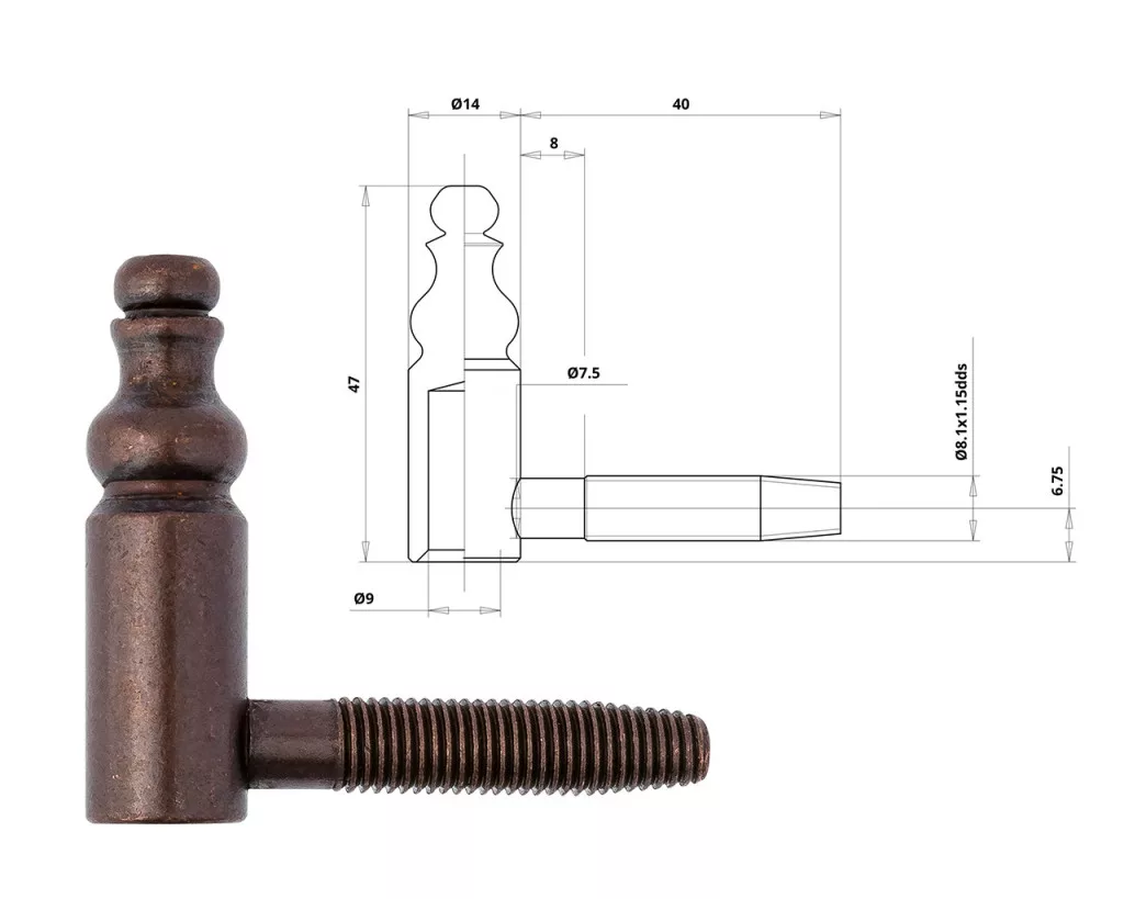 Otlav hinge 2 parts Decorative 14mm GIRL bronze