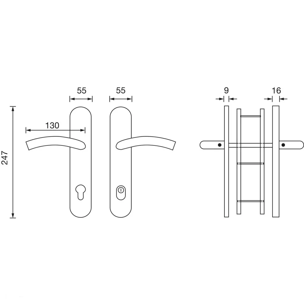 Kivitel: Kilincs és hosszúpajzs külön, toldás 16 mm, (cilinder kinyúlás 13-16)