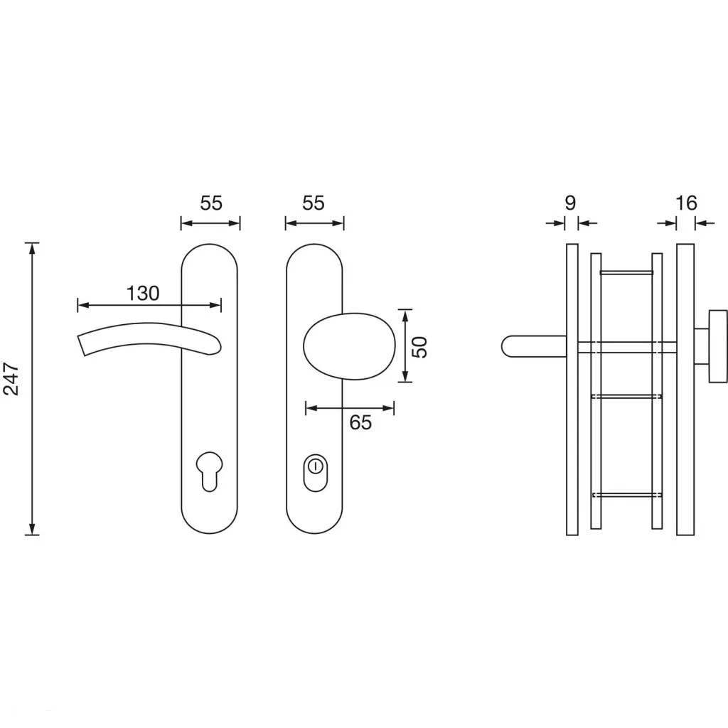 Kivitel: kilincs és hosszúpajzs külön, (cilinder kinyúlás 13-16)