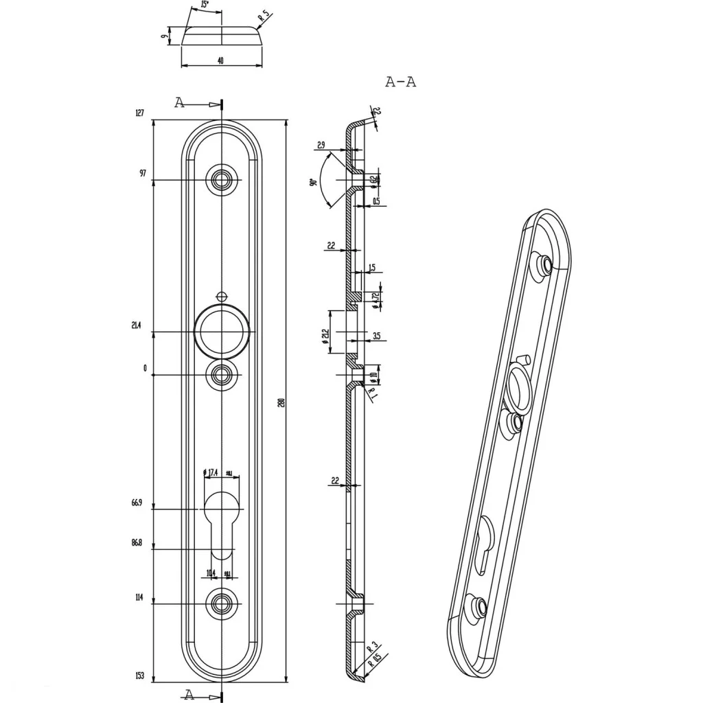 Külső pajzs (mm): 40 x 280 x 12