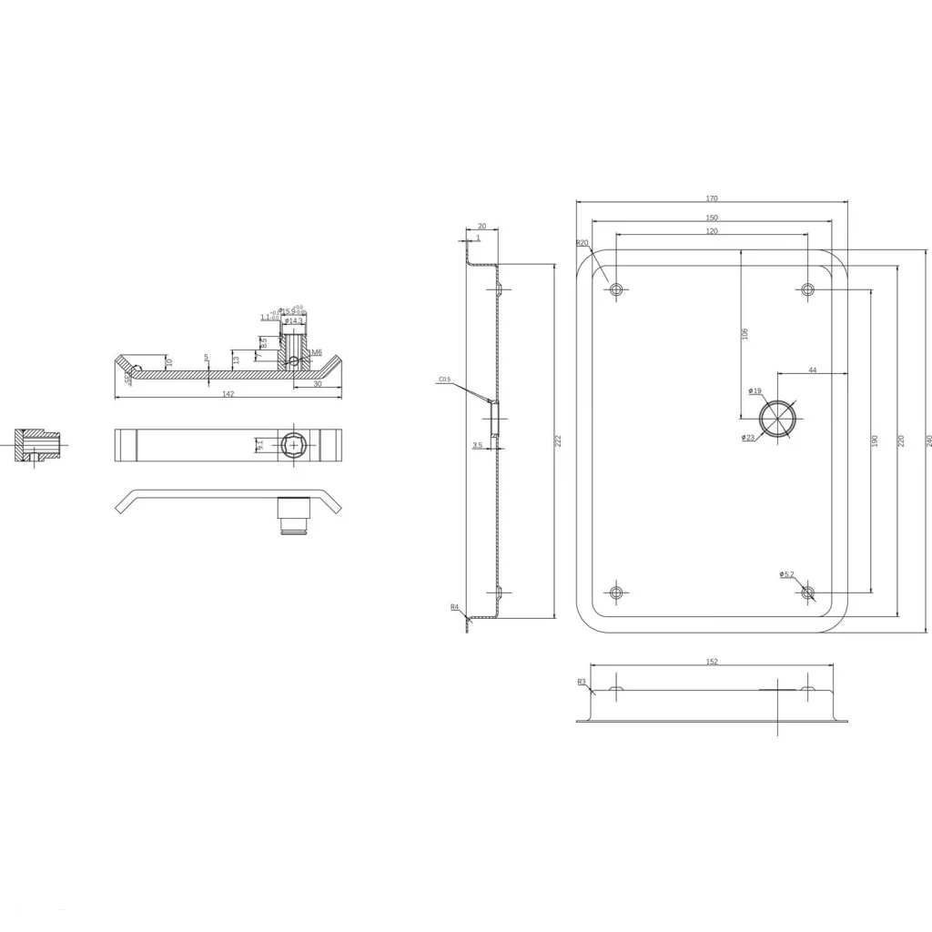 Tornaterem-vasalat 170 x 240 mm balos furat nélkül 9 mm matt nemesacél