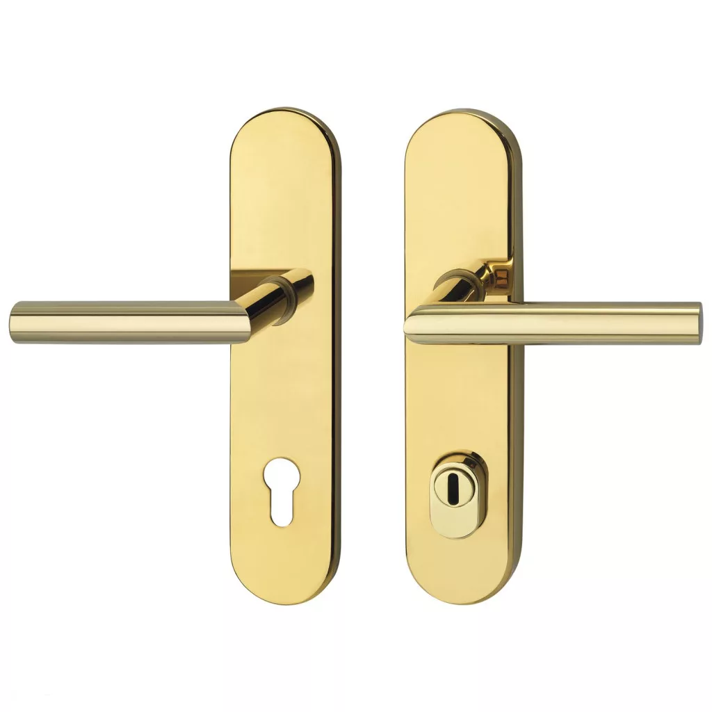 Marchesi pajzsos Biztonsági kilincsgarnitúra GEHRUNG PZ 88 ajtóv.választható cilinder védővel PVD