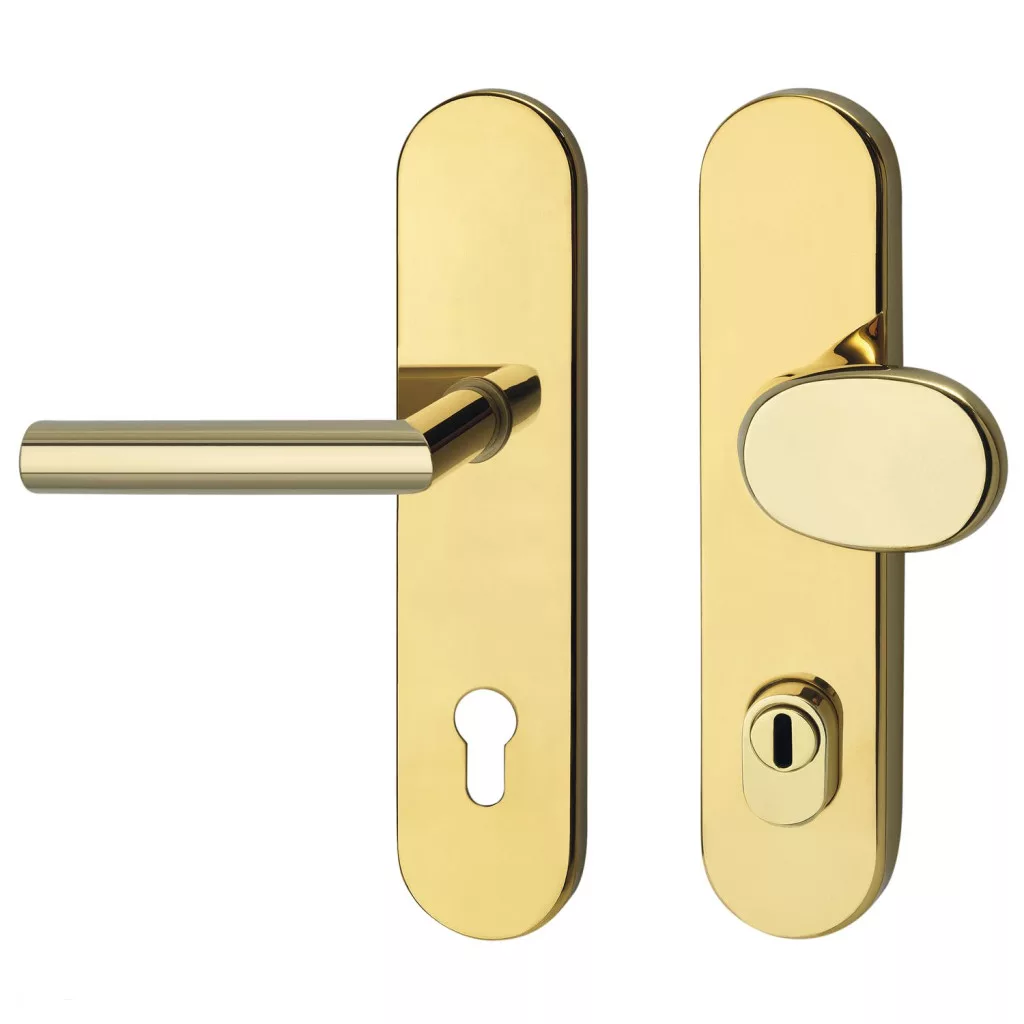 Marchesi pajzsos Biztonsági váltógarnitúra GEHRUNG PZ 88 cilinder védővel PVD-sárgarézszínű
