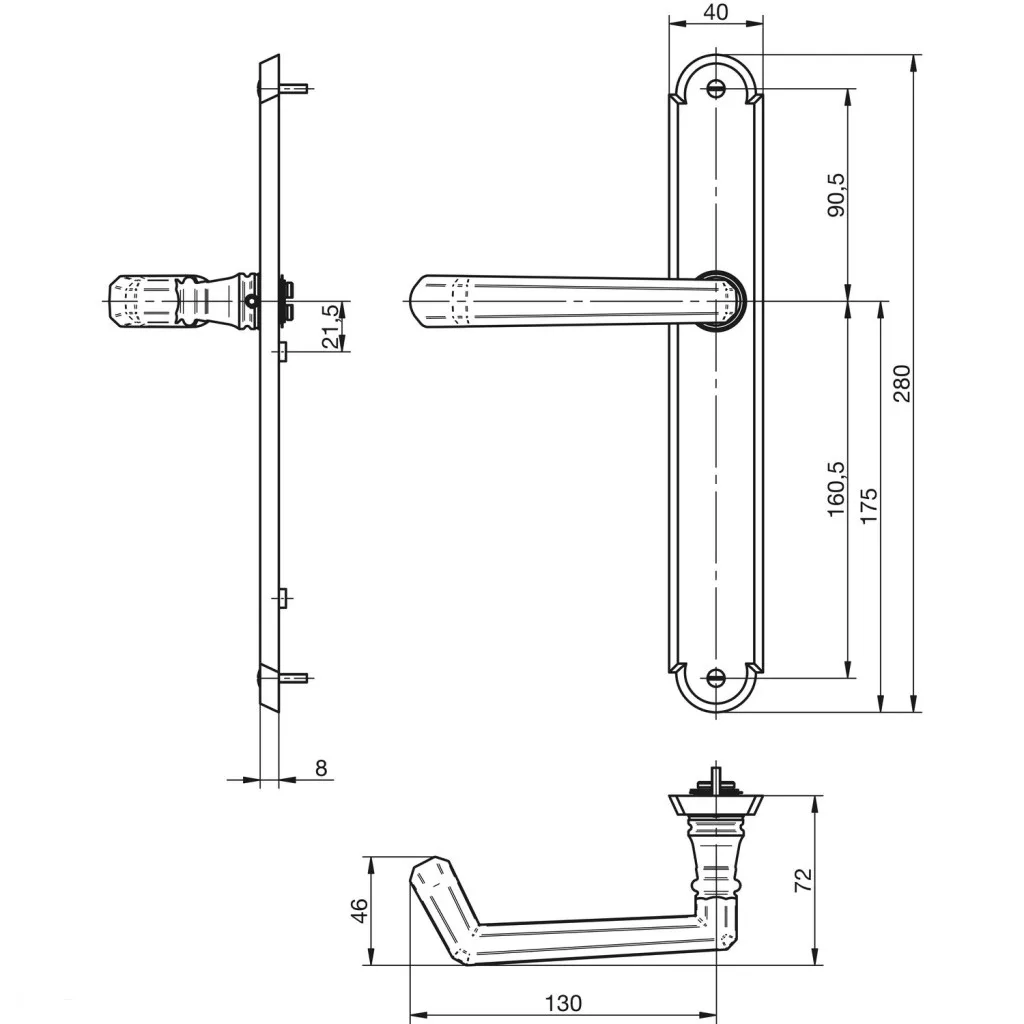 Kivitel: hosszúpajzs, forgatható kilincs