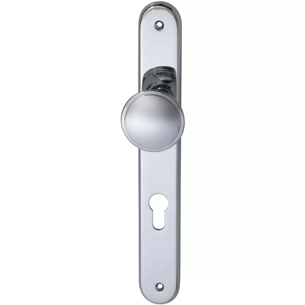 Marchesi hosszúpajzsos gombos bejárati ajtó garnitúra ELEGANT PZ 88 sárgaréz krómozott