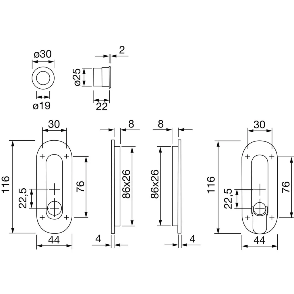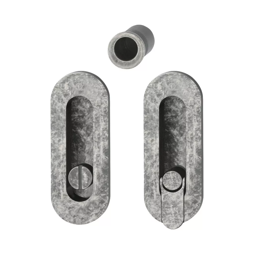 HOPPE tolóajtókagyló-szett M472, WC, ovális rozetta, sárgaréz ezüst antik