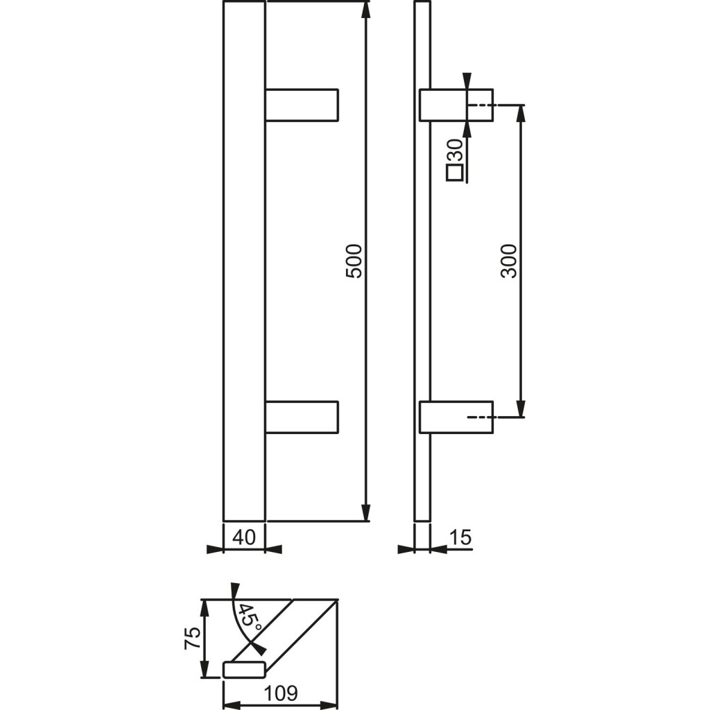 HOPPE fogantyú E5724 - szögletes ferde, 500/300, nemesacél matt