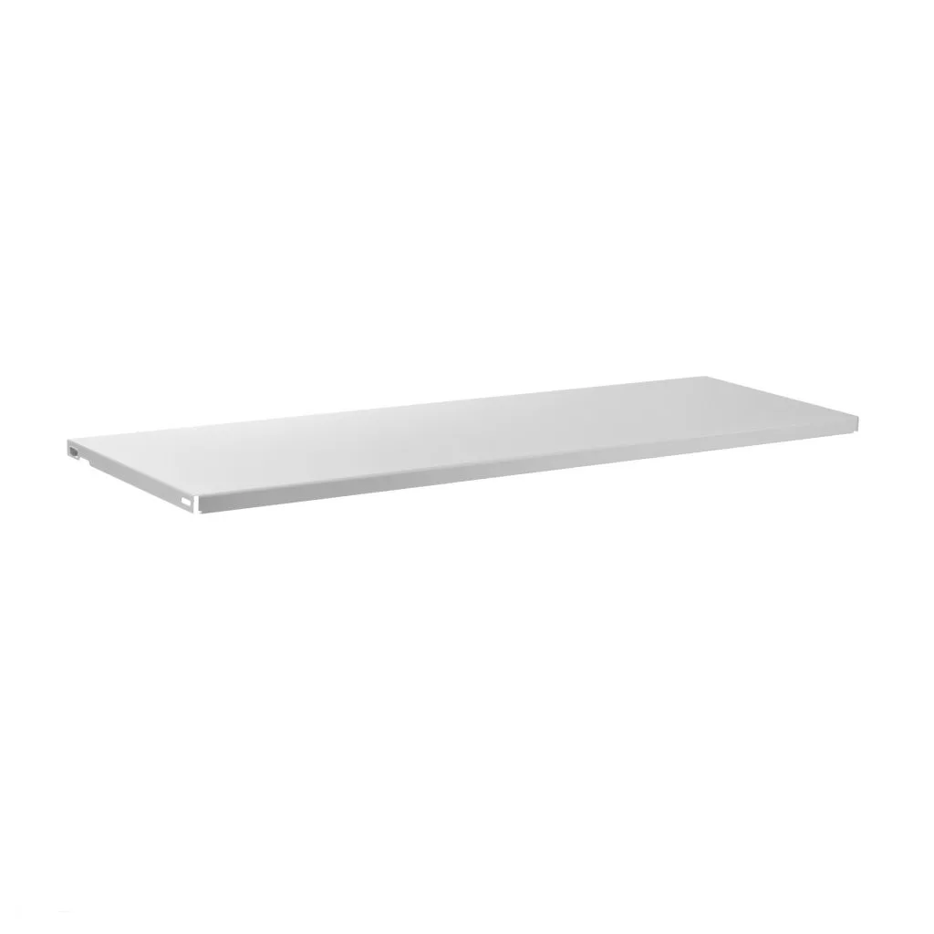 Fehér fém polc, 800 mm széles és 200 mm mély, akár 25 kg teherbírással.