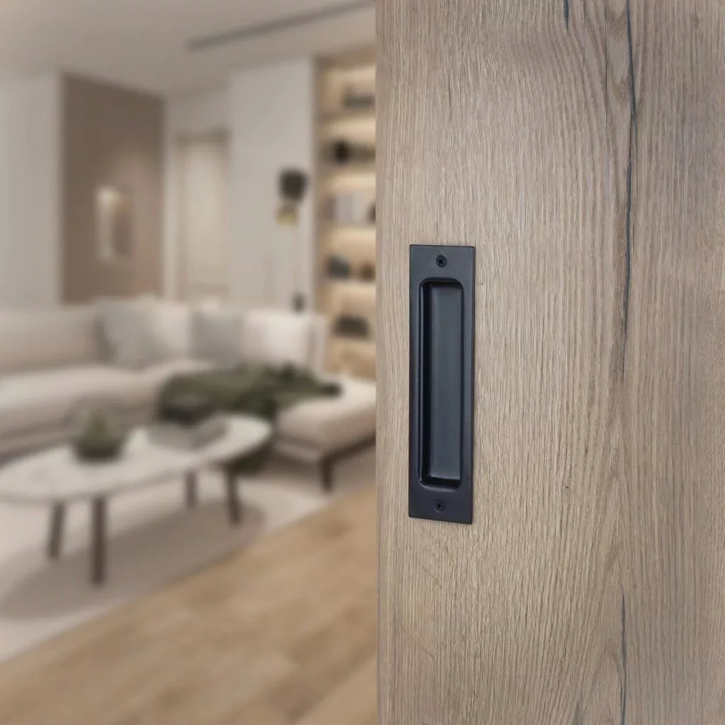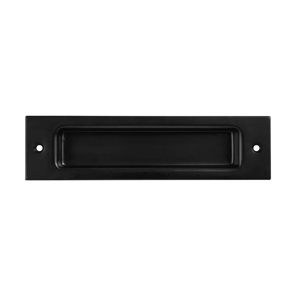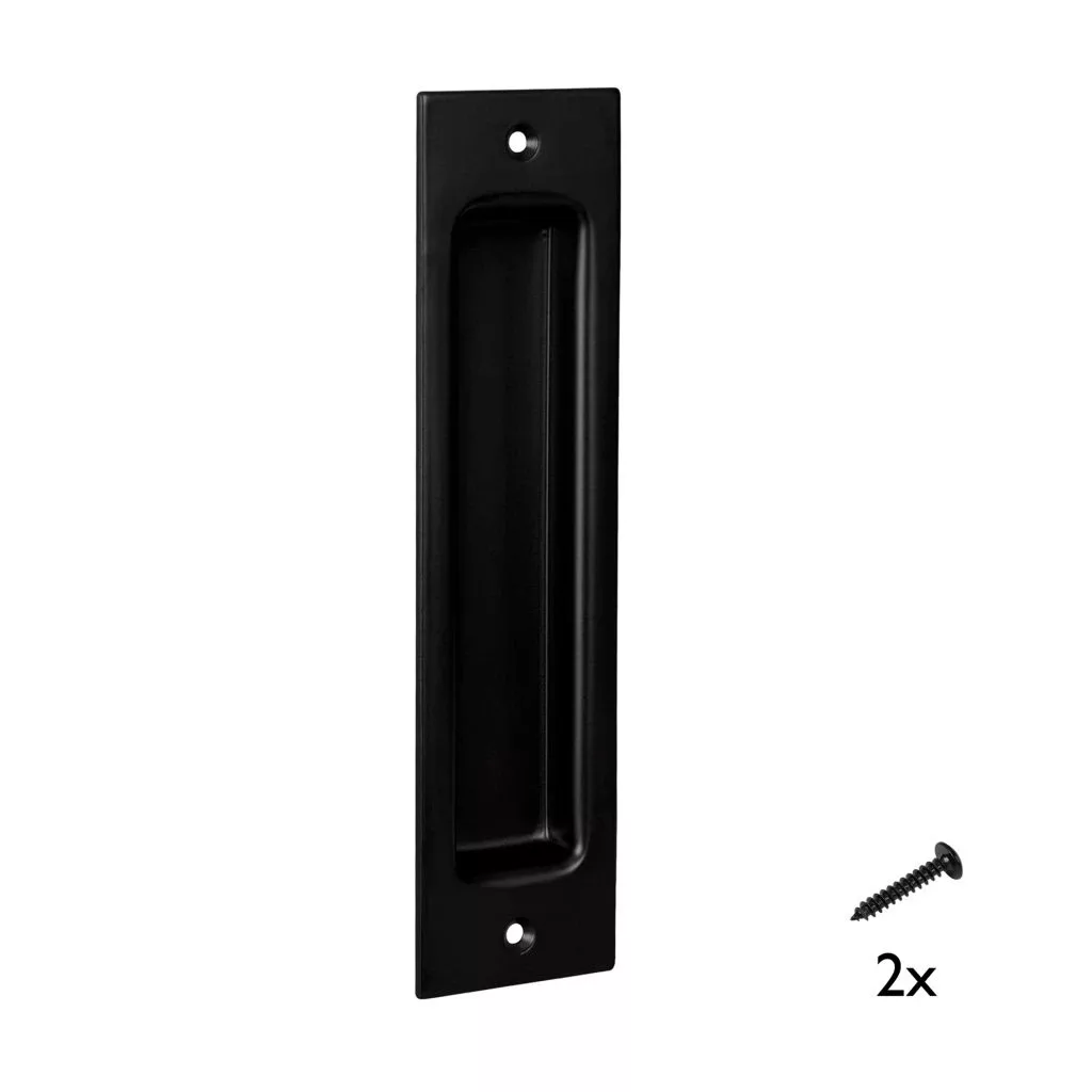Tolóajtókhoz való bevéső fogantyú matt fekete kivitelben, 203 mm hosszú, 53 mm széles és 15 mm magas. Rögzítés előre mart furatba csavarozva, szerelési távolság 180 mm. Rögzítőcsavarokkal együtt.