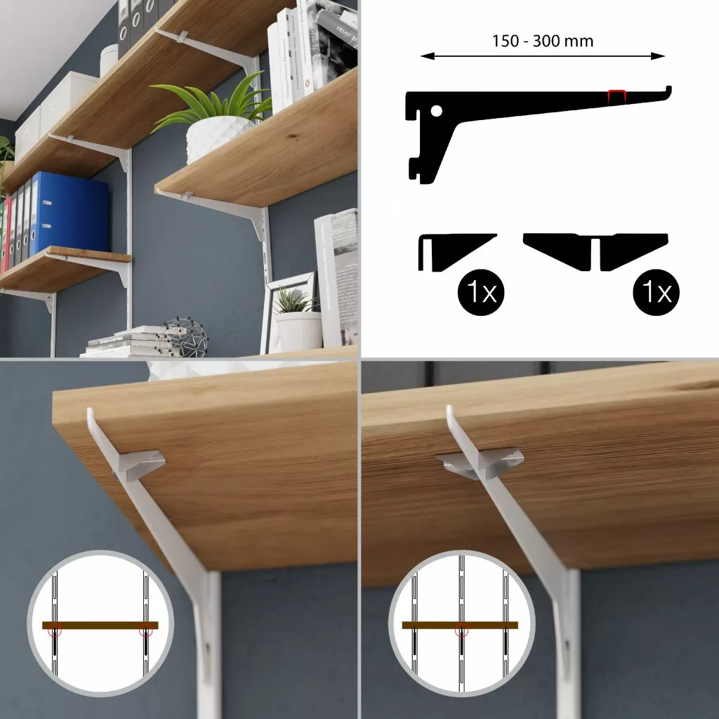A változtatható fali polc összeszereléséhez a következő alkatrészekre lesz szüksége, melyeket a címekre kattintva érhet el: