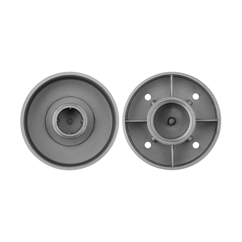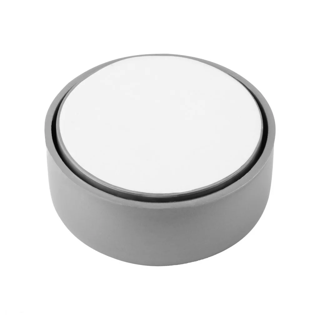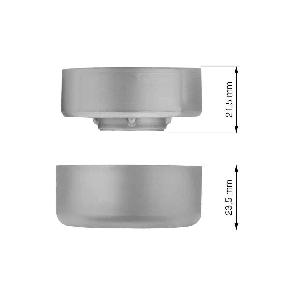 Műanyag csúszka ezüst kivitelben, 53,5 mm átmérővel és 23,5 mm magassággal, ragasztásra .