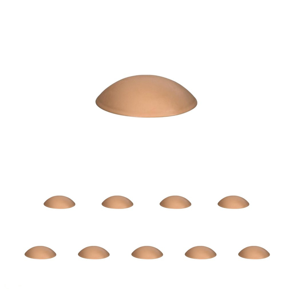 Bézs színű műanyag ajtóütköző, 40 mm átmérővel és 10 mm magassággal. Alkalmas falra ragasztásra, a fogantyú magasságában.