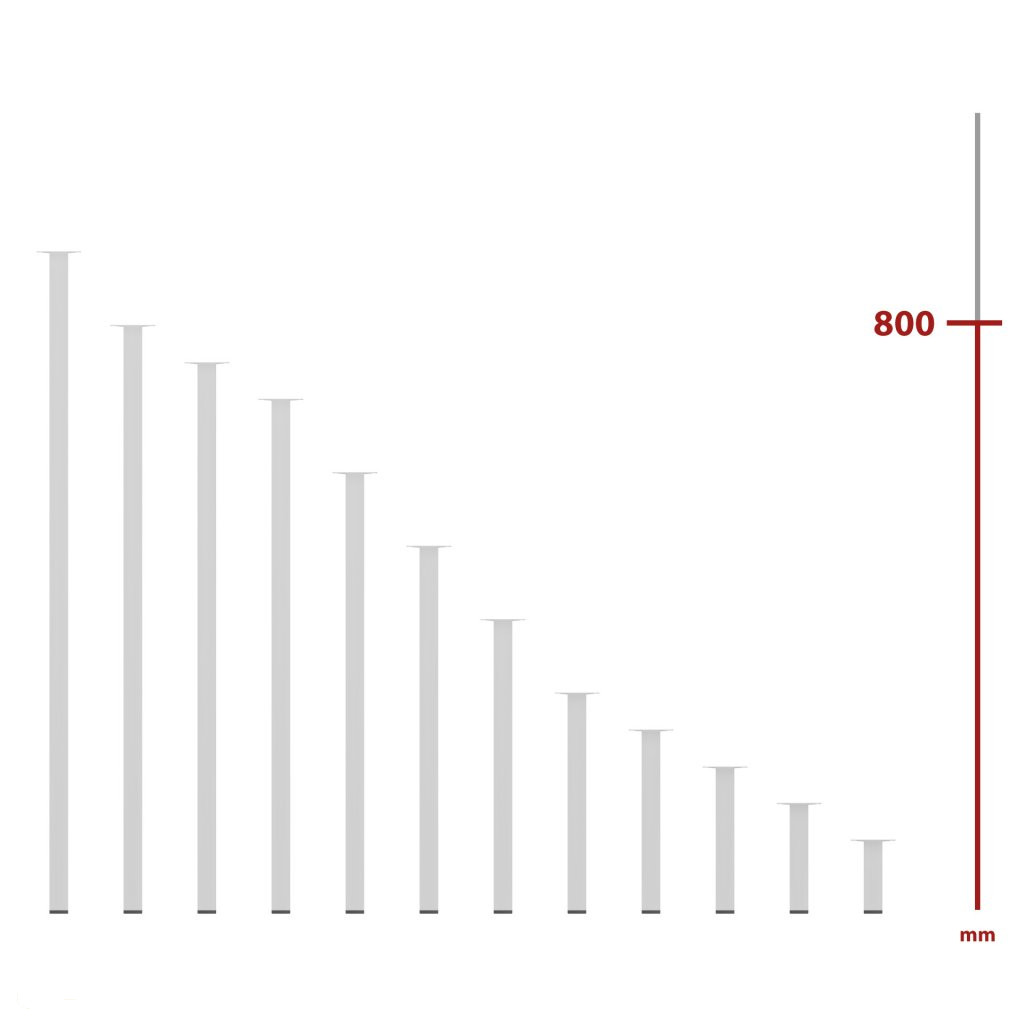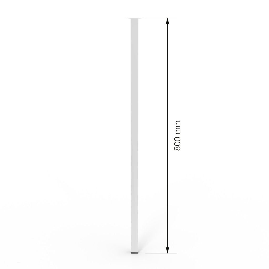 Négyzet alakú fém bútorláb fehér színben, 25x25 mm profilból, 800 mm magas, 60x60 mm-es talppal és alsó műanyag csúszótalppal.