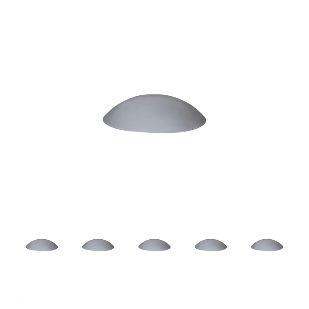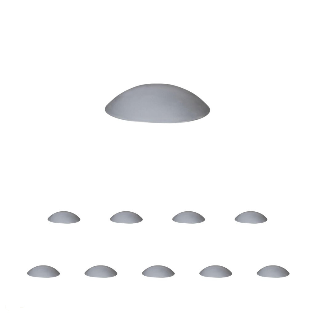 Szürke színű műanyag ajtóütköző, 40 mm átmérőjű és 10 mm magas. Alkalmas falra ragasztásra, a fogantyú magasságában.
