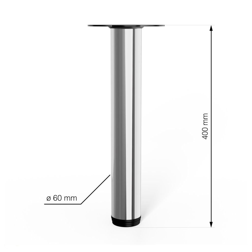 A 60 mm átmérőjű és 400 mm magas, krómozott, kerek bútorláb stílusos dizájndarabpá varázsolja bútorát.