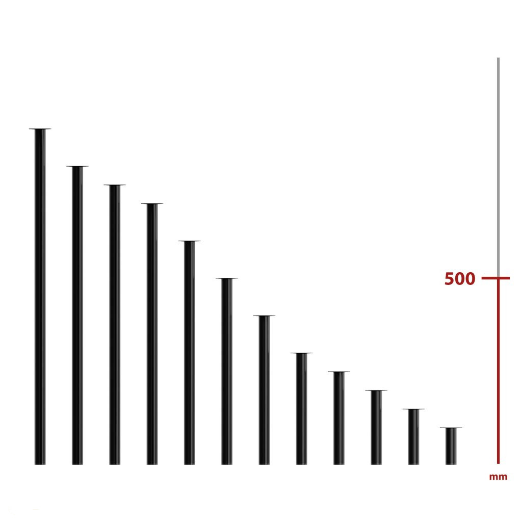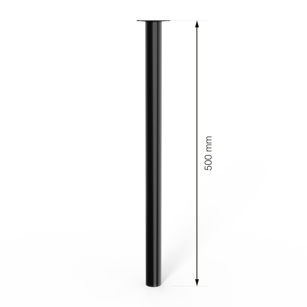Kerek bútorláb, 500 mm magas, fekete színben, stílusos dizájndarabpá varázsolja bútorát. Méret: 60x60mm.