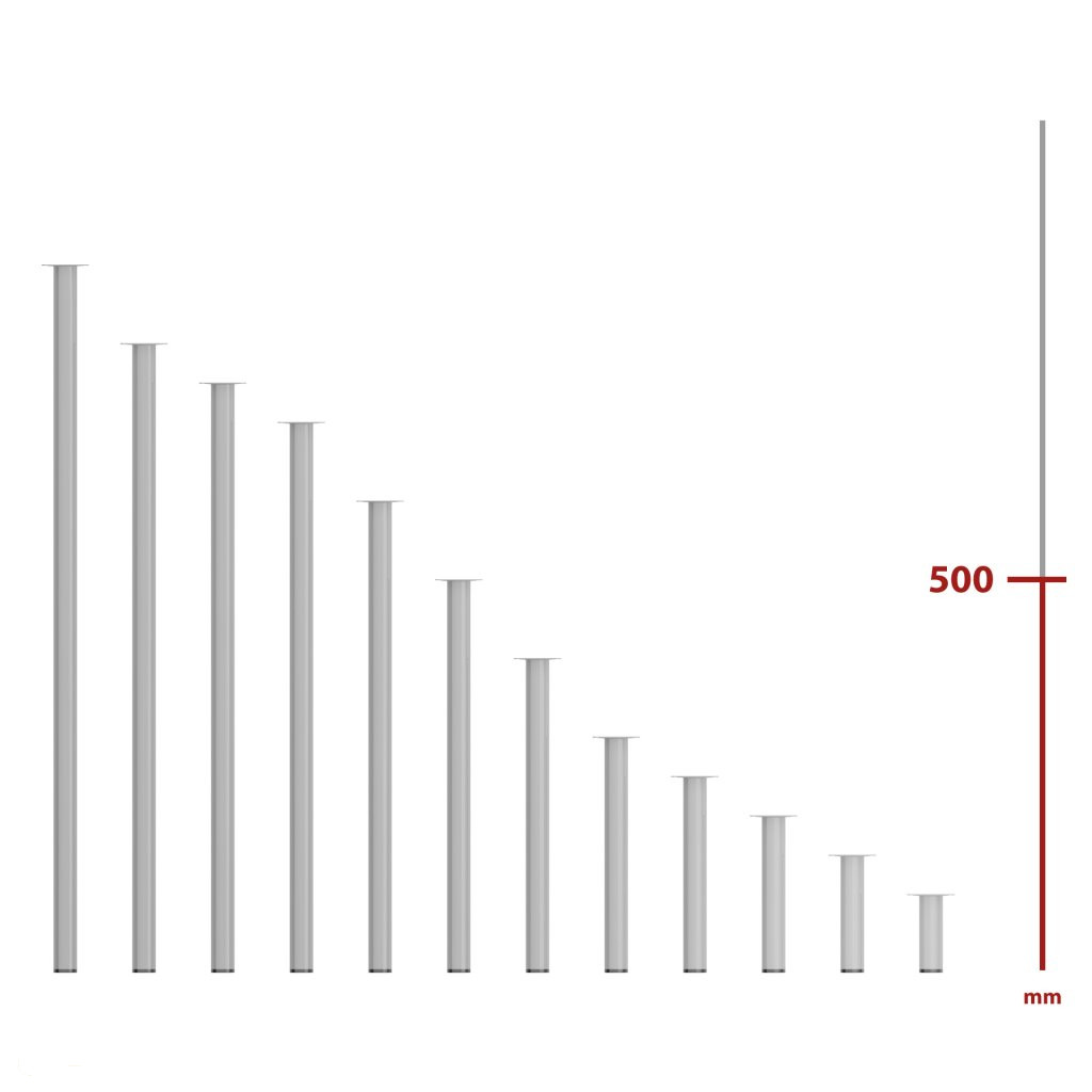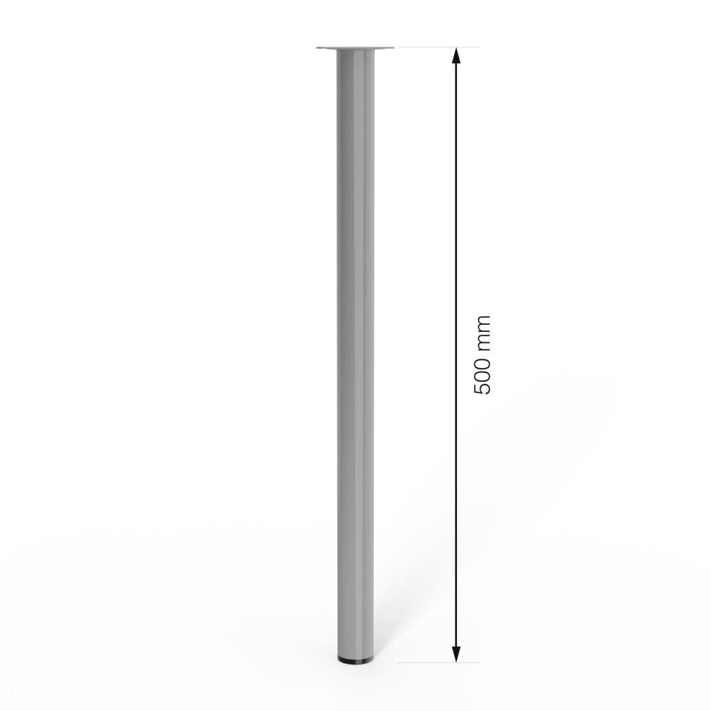 Kerek bútorláb, 500 mm magas, szürke színben, stílusos dizájndarabpá varázsolja bútorát. Méret: 60x60mm.