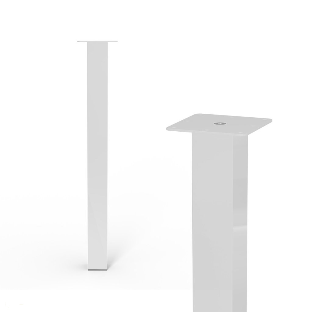 Négyzet alakú fém bútorláb fehér színben, 60x60 mm profillal, 710 mm magassággal és alsó műanyag csúszótalppal.