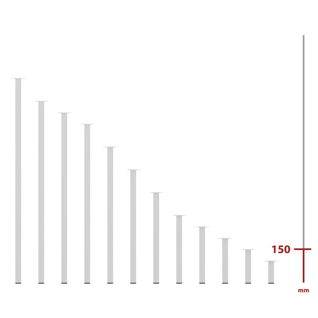 Négyzet alakú fém bútorláb fehér színben, 25x25 mm-es profillal, 150 mm magas, 60x60 mm-es lemezzel és alsó műanyag csúszótalppal.