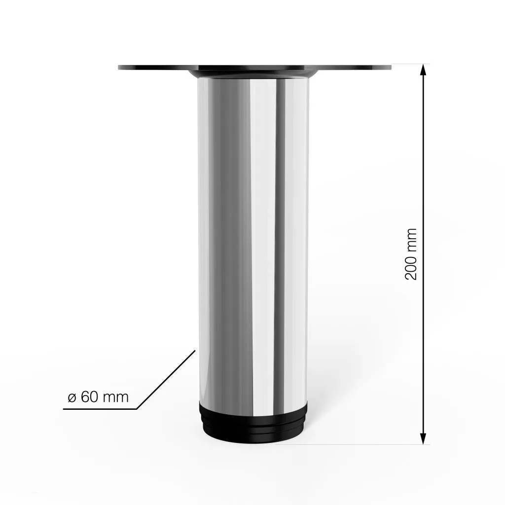 A 60 mm átmérőjű és 200 mm magas, krómozott, kerek bútorláb stílusos dizájndarabpá varázsolja bútorát.