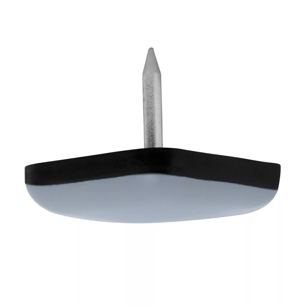 PTFE csúszókendő szeggel, 24x24 mm méretű, világos szürke.