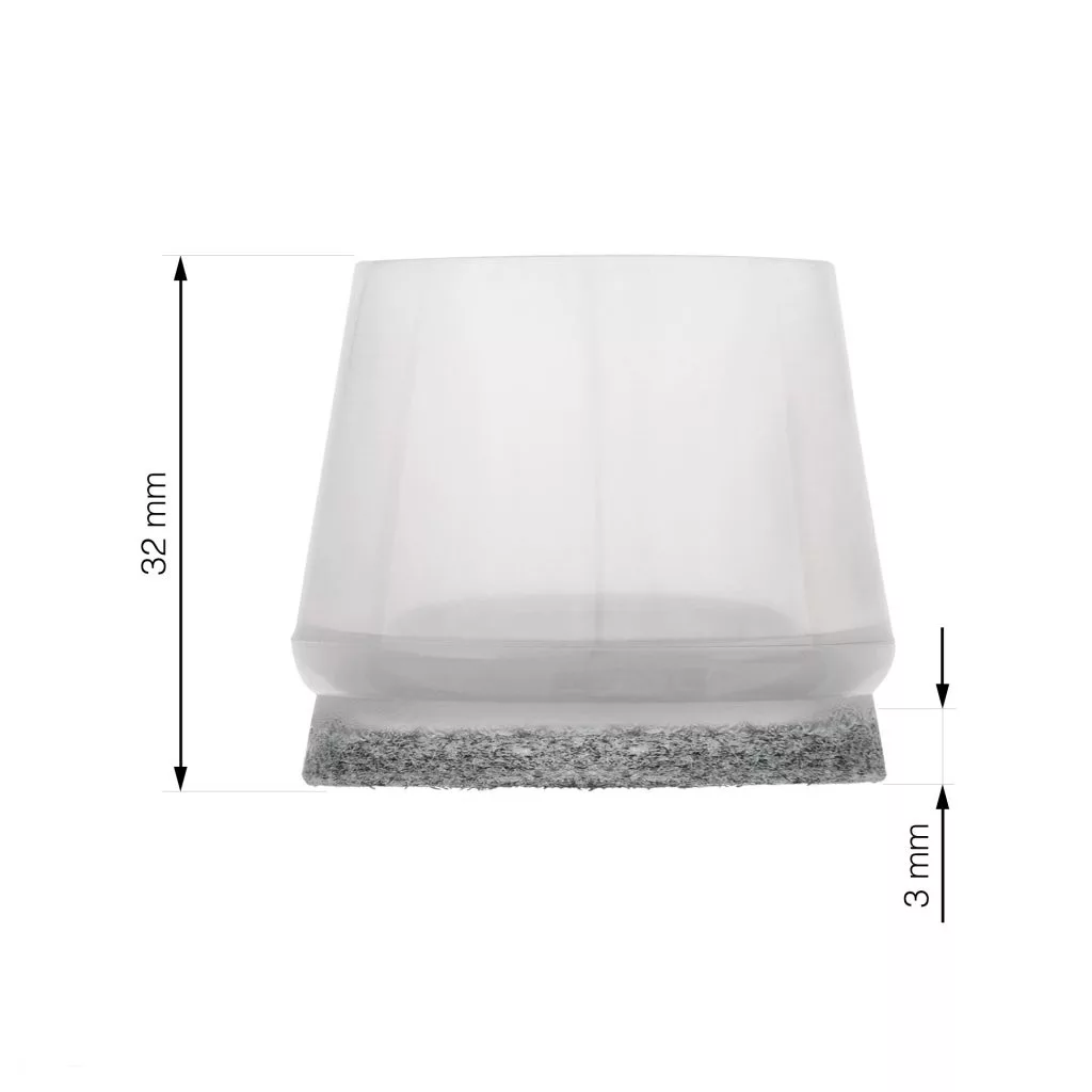 Átlátszó, filccel bevont csúszka, 29-31 mm átmérőjű, azonos átmérőjű széklábra helyezhető.