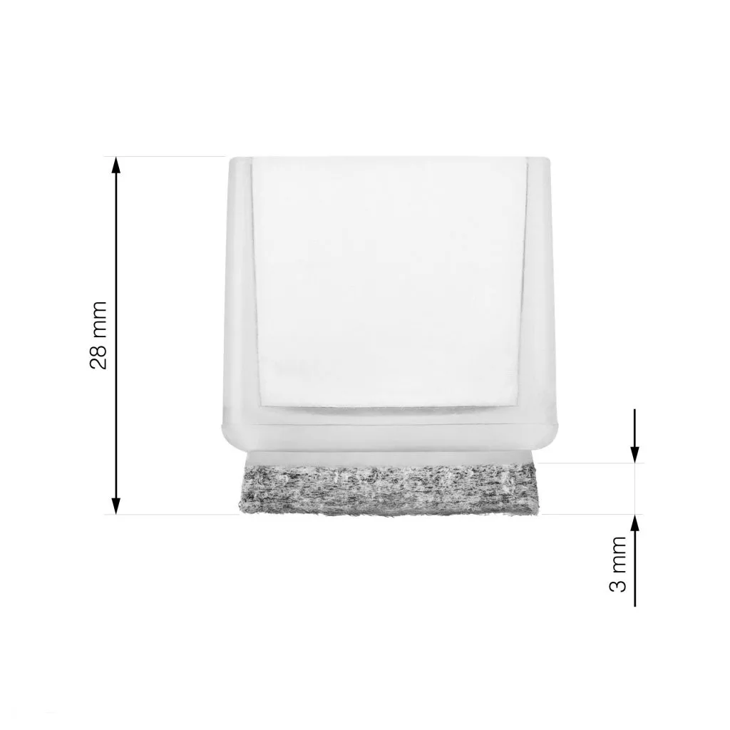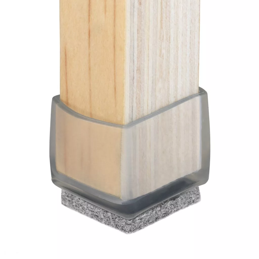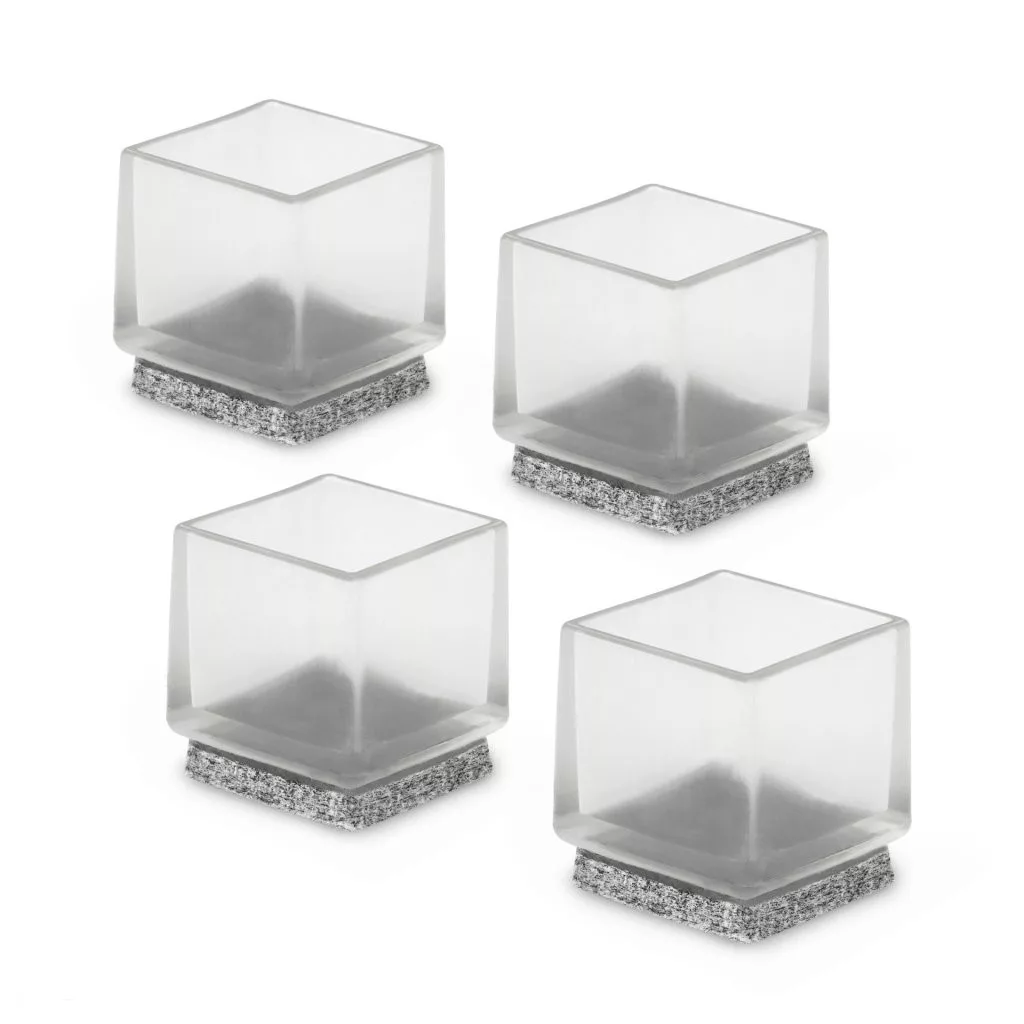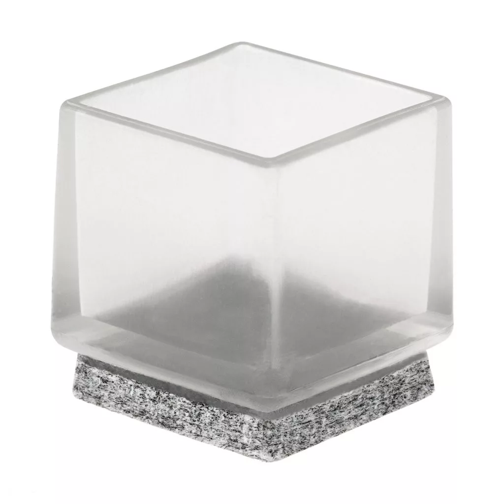 Átlátszó, négyzet alakú, filccel bevont csúszka, 22x22 mm-es méretben, azonos méretű széklábakra.