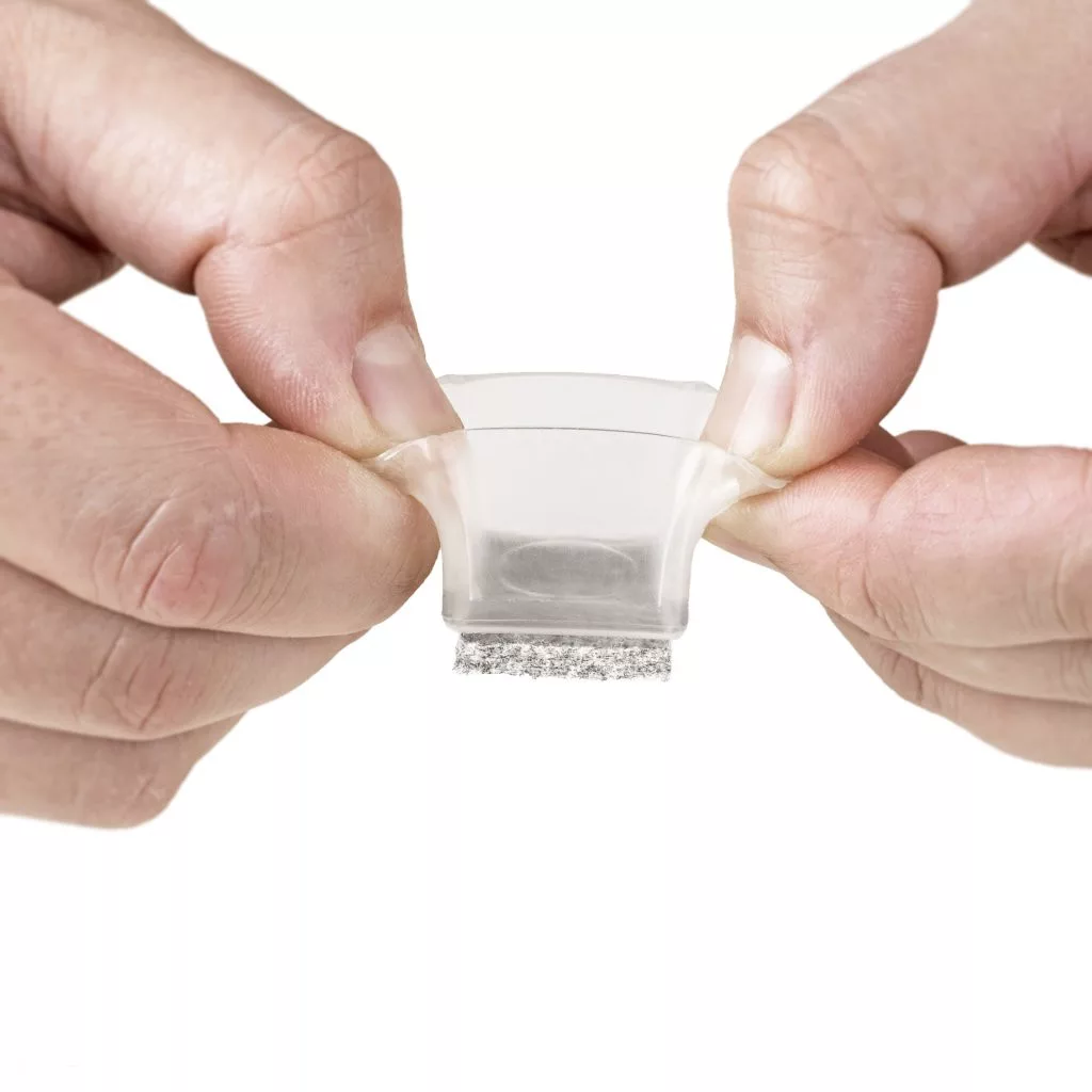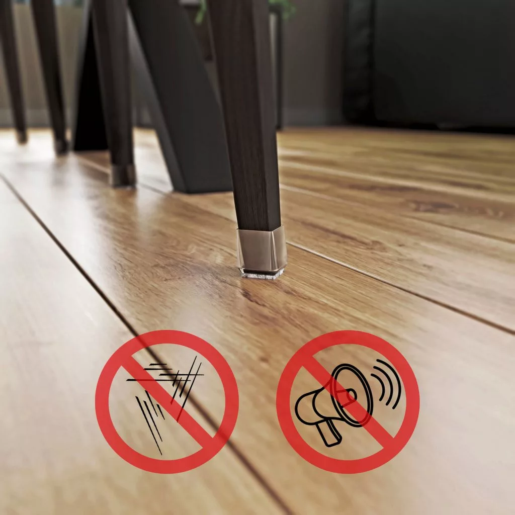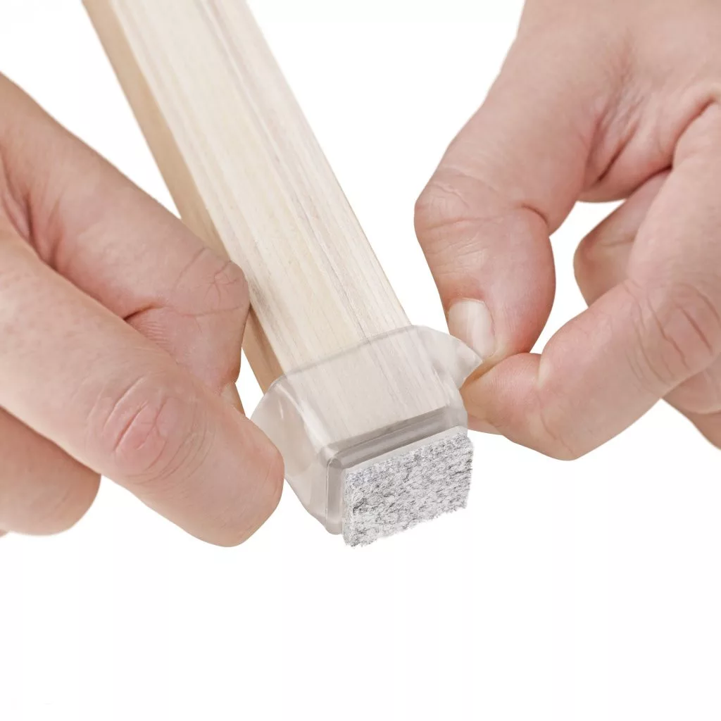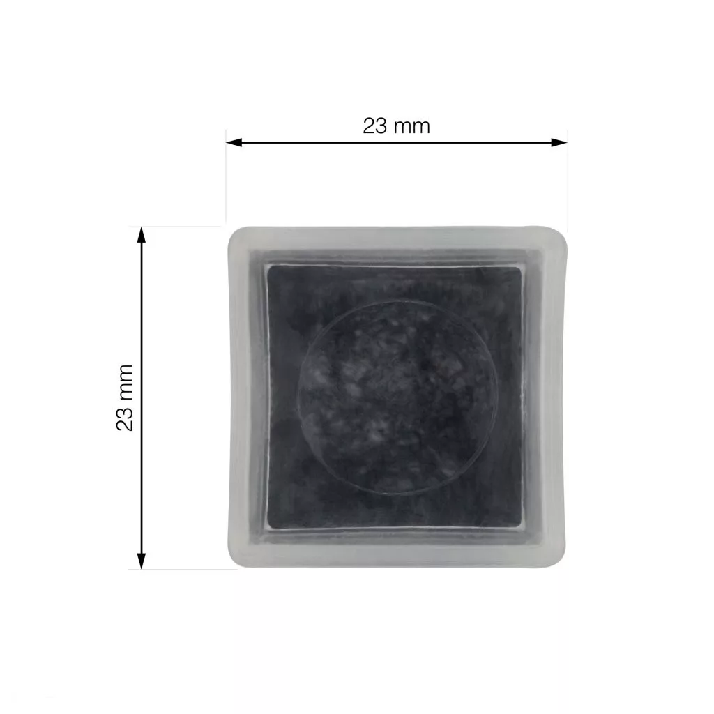 Átlátszó, négyzet alakú, filccel bevont csúszka, 22x22 mm-es méretben, azonos méretű széklábakra.