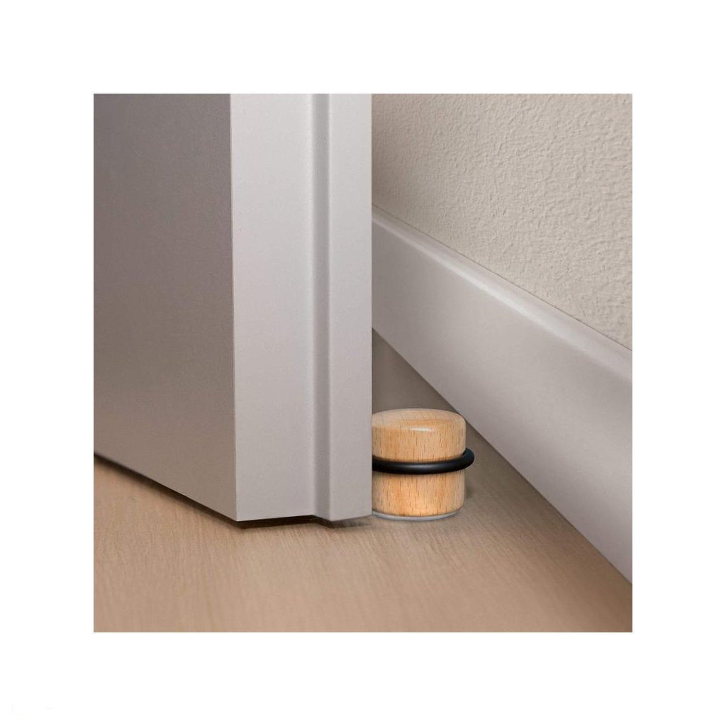 37 mm átmérőjű és 30 mm magas bükkfa ajtóütköző (gumihüvellyel együtt). Védi a falakat és a bútorokat az ajtó ütődéseitől. Minden sima padlótípusra ragasztható.