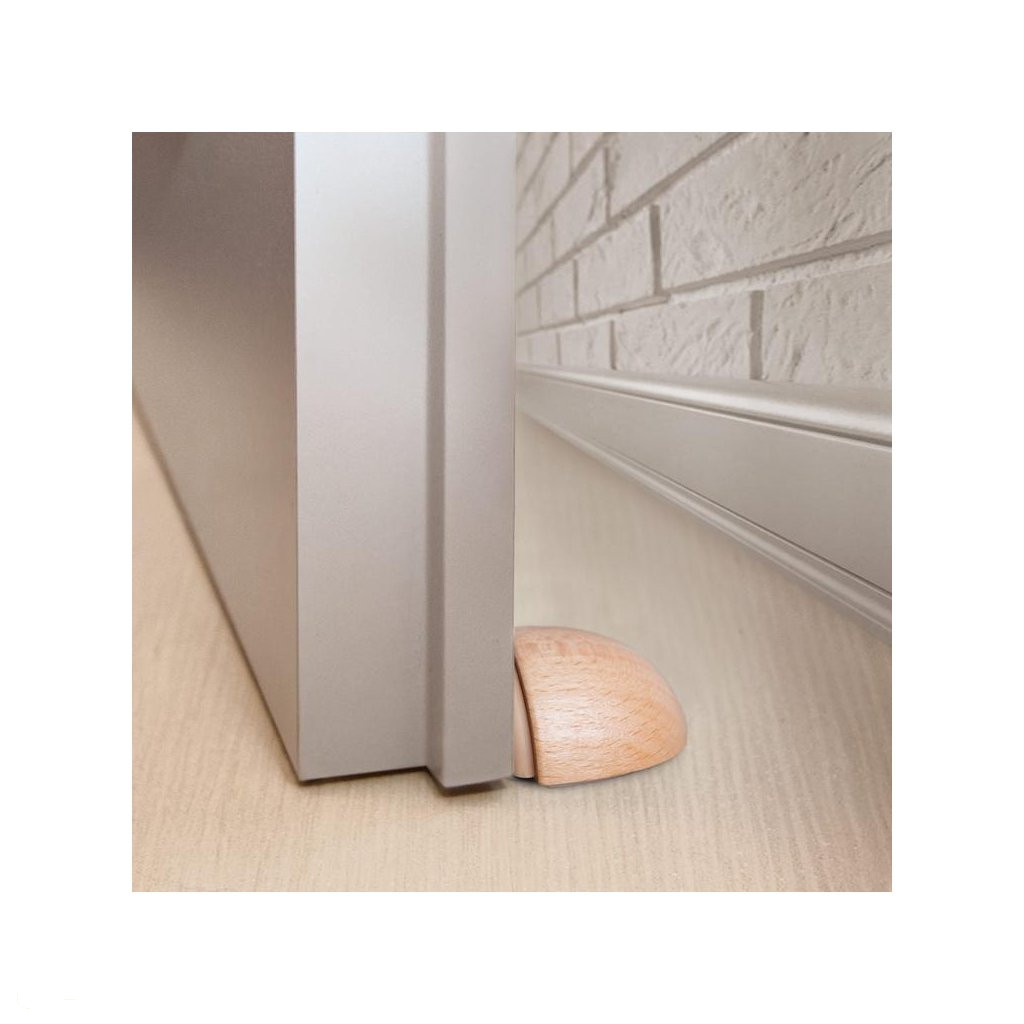 Bükkfa dekorral ellátott, fa ajtóütköző, 49 mm széles és 23 mm magas. Védi a falakat és a bútorokat az ajtó ütődéseitől. Minden sima padlótípusra ragasztható.
