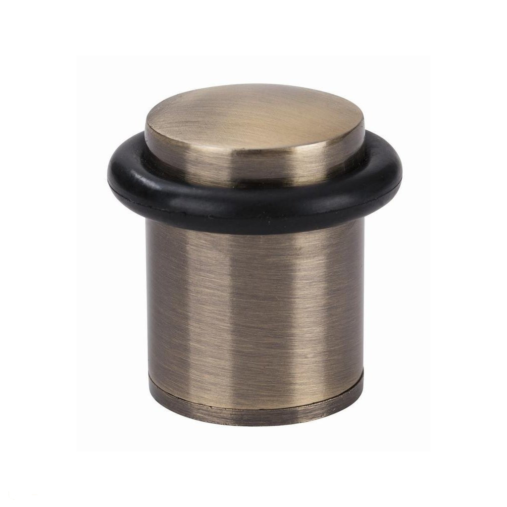 Antik sárgaréz bevonatú fém ajtóütköző, 25 mm átmérőjű és 38 mm magas (gumihüvellyel együtt). Védi a falakat és a bútorokat az ajtó ütődéseitől. Minden padlótípusra csavarozható. Rögzítési anyaggal együtt.