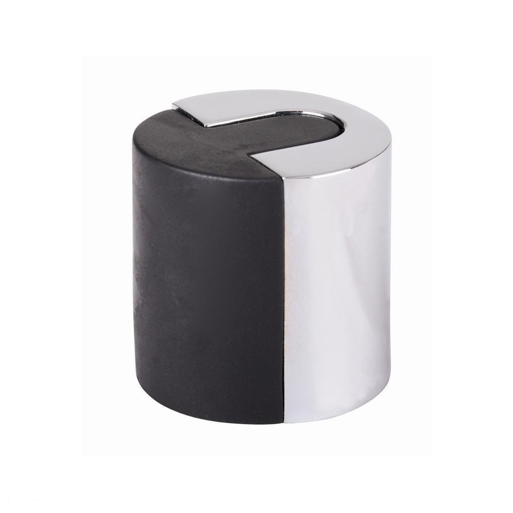 Krómozott fém ajtóütköző, 40 mm átmérővel és 40 mm magassággal. Védi a falakat és a bútorokat az ajtó ütődéseitől. Minden padlótípusra csavarozható. Rögzítőanyaggal együtt.