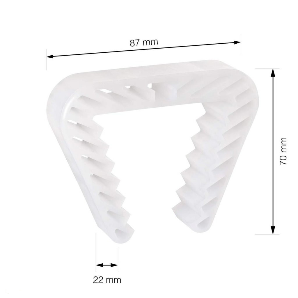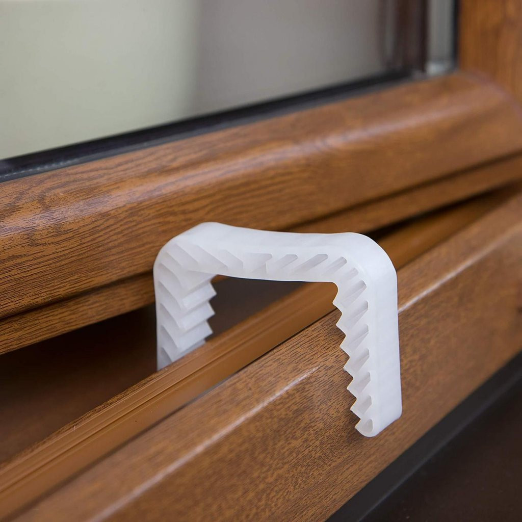 Többcélú ajtó- és ablakütköző fehér színben, 87 mm széles és 70 mm magas. Az ütköző csillapítóként szolgál az ablak és az ablakkeret, vagy ajtóütközőként az ajtó és az ajtókeret között. Megakadályozza az ajtó/ablak véletlen bezáródását.