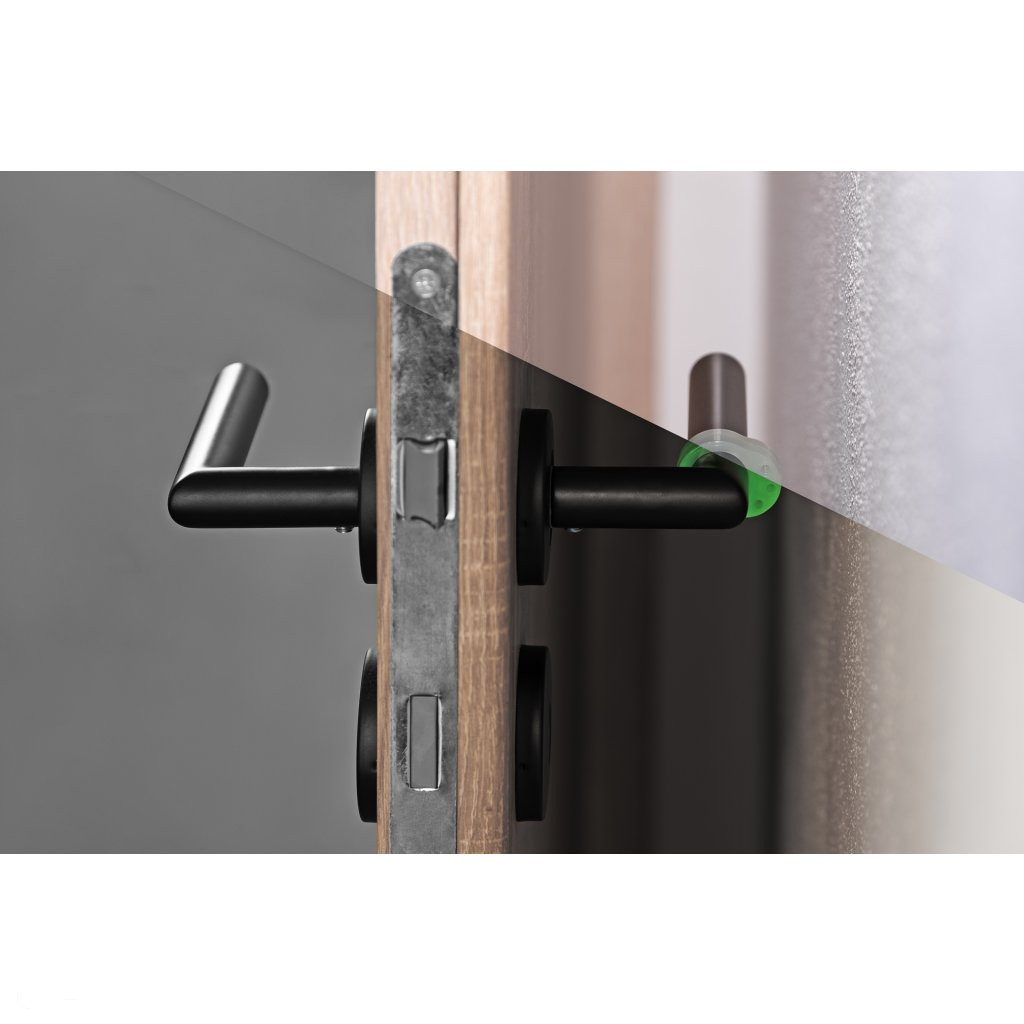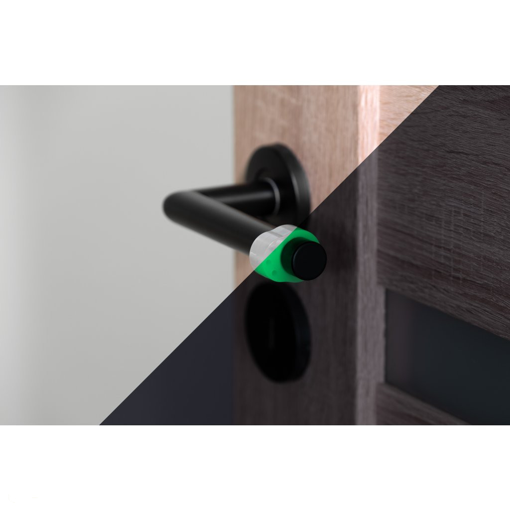 Fluoreszkáló ajtóütköző 15 mm belső átmérőjű kilincshez. Rugalmasságának köszönhetően akár 20 mm-ig állítható. Védi a falakat és a bútorokat az ajtó- és ablakkilincsek ütődéseitől. Az ütköző ovális és kerek kilincsekre is rögzíthető. A fluoreszkálásnak köszönhetően az ütköző éjszaka világít, így segítve a jobb tájékozódást sötétben.