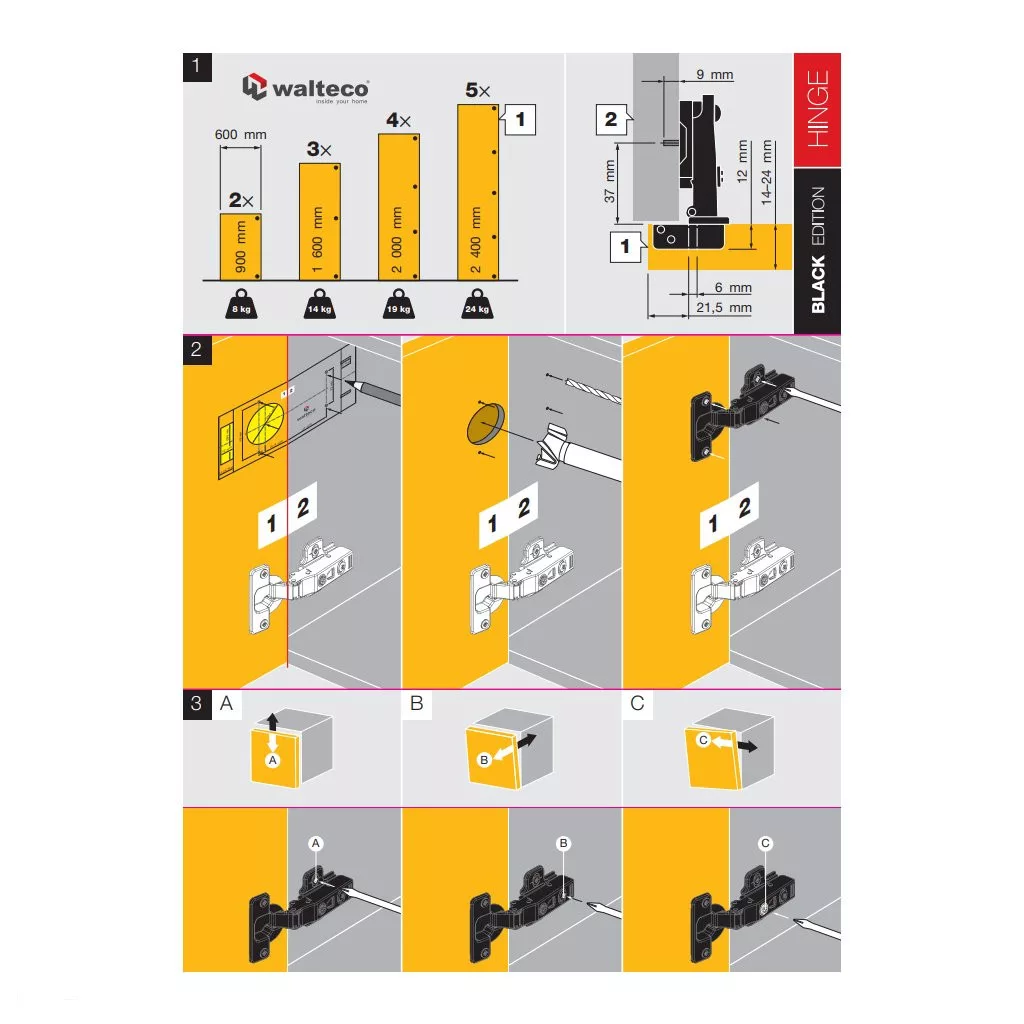 35 mm átmérőjű csészés zsanér, klipszes rögzítéssel és integrált csillapítással, rétegelt ajtótípushoz. A nagyon népszerű Black Edition termékcsaládból.