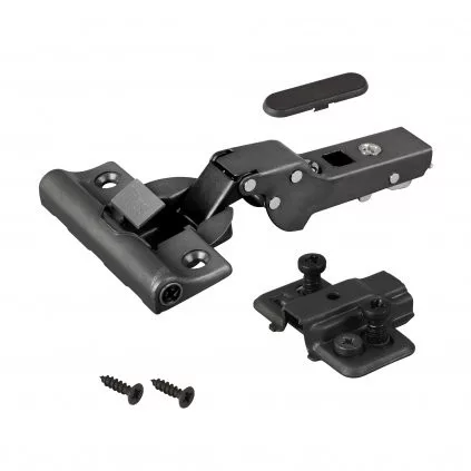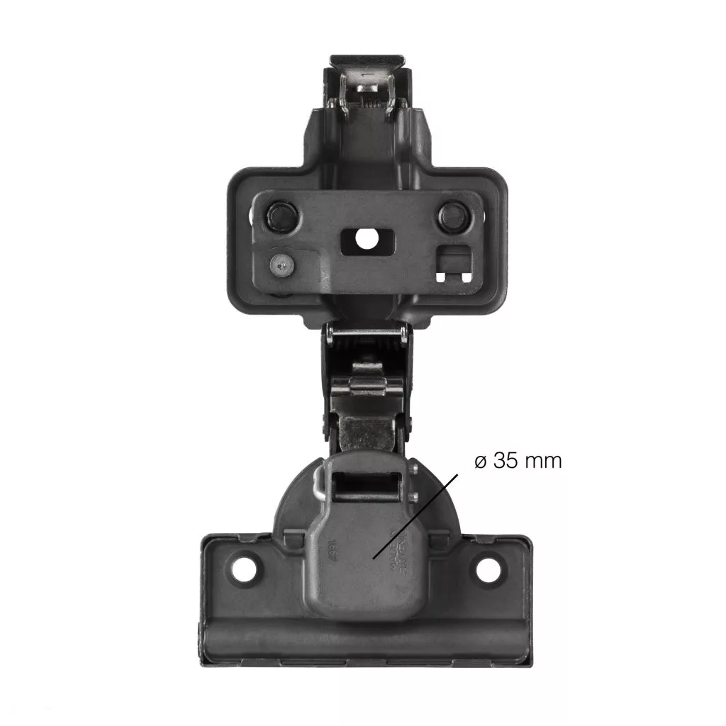 35 mm átmérőjű csésze alakú zsanér, klipszes rögzítéssel és integrált csillapítással félig átfedéses ajtótípusokhoz. Egy nagyon népszerű termékcsaládból.