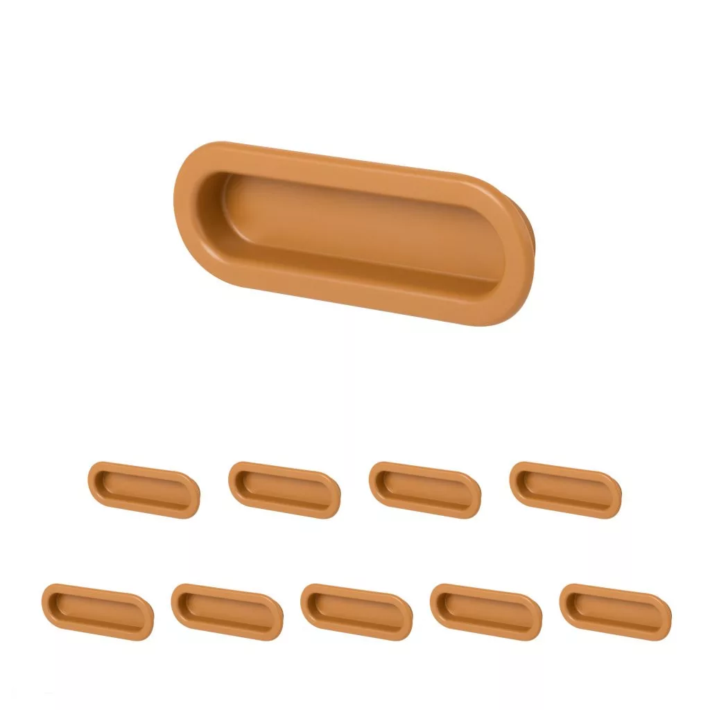 Műanyag, süllyesztett bútorfogantyú, Nela bútorból, bükkfa kivitelben, 88 mm hosszú, 11 mm széles és 32 mm magas. A süllyesztett fogantyú méretei: hosszúság 75 mm, szélesség 17 mm és mélység 7 mm.
