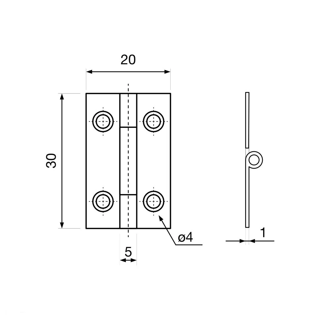 20x30 mm méretű horganyzott zsanér különféle ajtók, bútorok/dobozajtók rögzítéséhez műhelyben, kertben vagy nyaralóban.